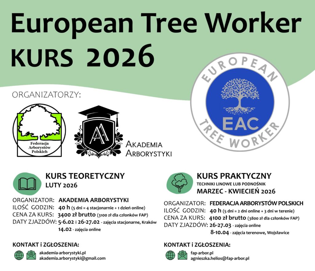 Oba moduły kursu przygotowane i prowadzone będą przez wymienione powyżej, akredytowane w European Arboricultural Council centra szkoleniowe, chętni mogą więc liczyć na wysoki poziom przekazanej wiedzy i materiałów niezbędnych do przystąpienia do egzaminu pozwalającego na uzyskanie prestiżowego w całej Unii Europejskiej Certyfikatu ETW.
